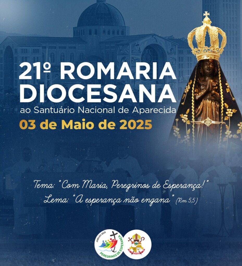 A Diocese de Osasco se prepara para mais um grande momento de comunhão e fé: a 21ª Romaria Diocesana ao Santuário Nacional de Nossa Senhora Aparecida, que acontece no dia 3 de maio de 2025. Neste ano, a romaria acontece dentro do contexto do Jubileu de Esperança, vivenciado por toda a Igreja, com o tema: “Com Maria, Peregrinos de Esperança” e o lema: “A esperança não engana” (Rm 5,5).