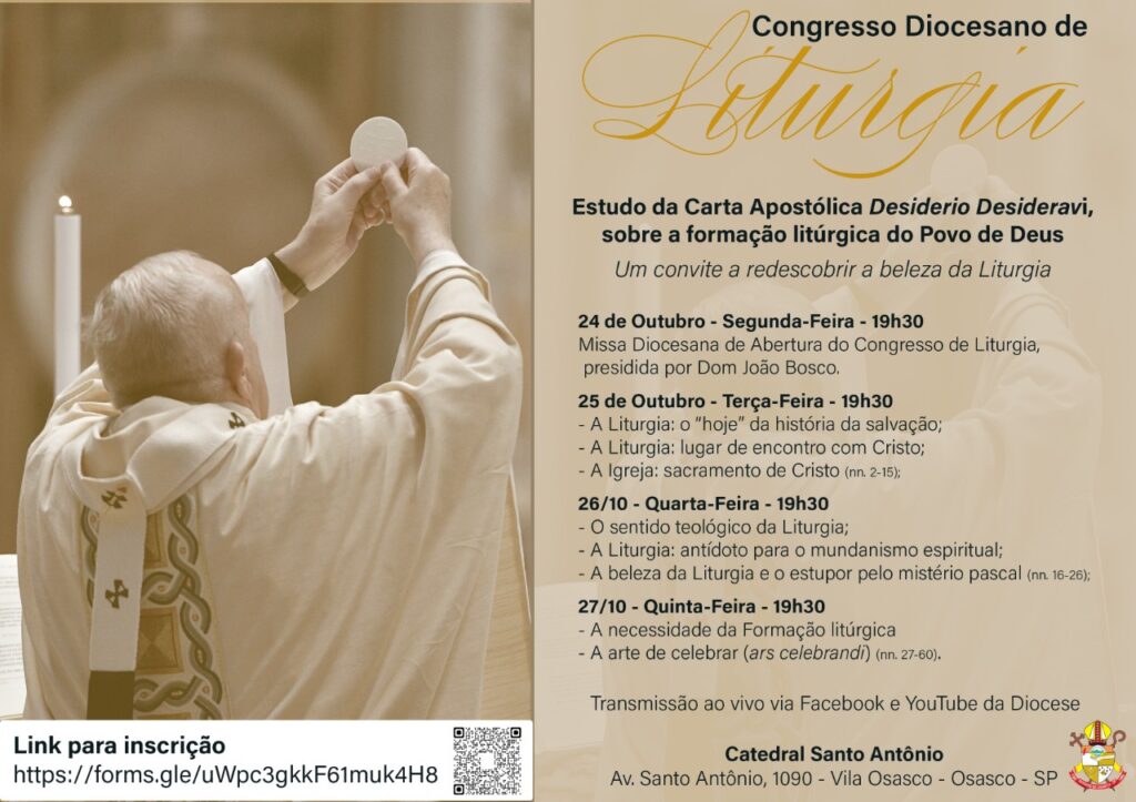 Durante a próxima semana, a Pastoral Litúrgica de toda a Diocese de Osasco estará reunida na Catedral de Santo Antônio para que, atendendo ao convite do Papa Francisco nesta Carta Apostólica que será estudada, aprofunde a sua formação para melhor celebrar, viver e participar da Sagrada Liturgia.