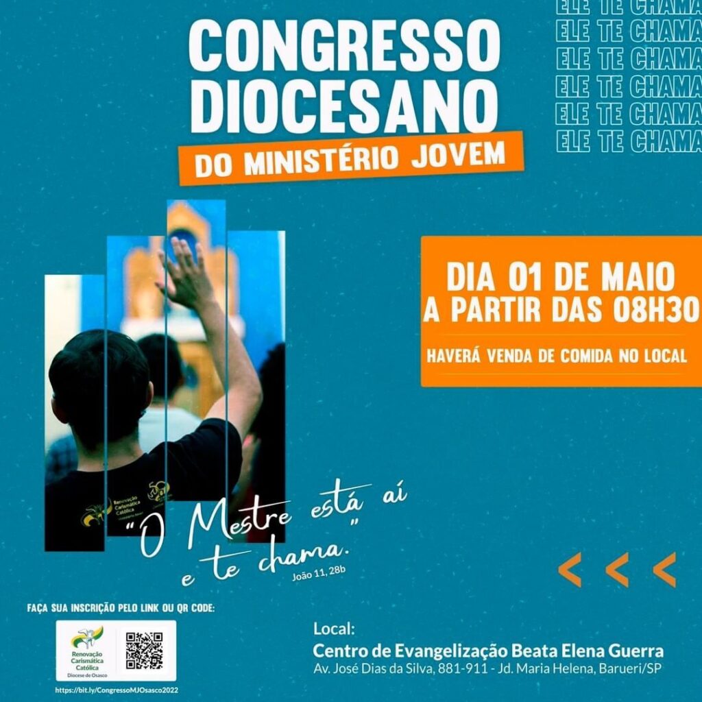 O Congresso Diocesano do Ministério Jovem da RCC Osasco vai acontecer no dia 1º de Maio, prometendo um dia cheio de bênçãos e fogo do Espírito Santo sobre a nossa juventude.
