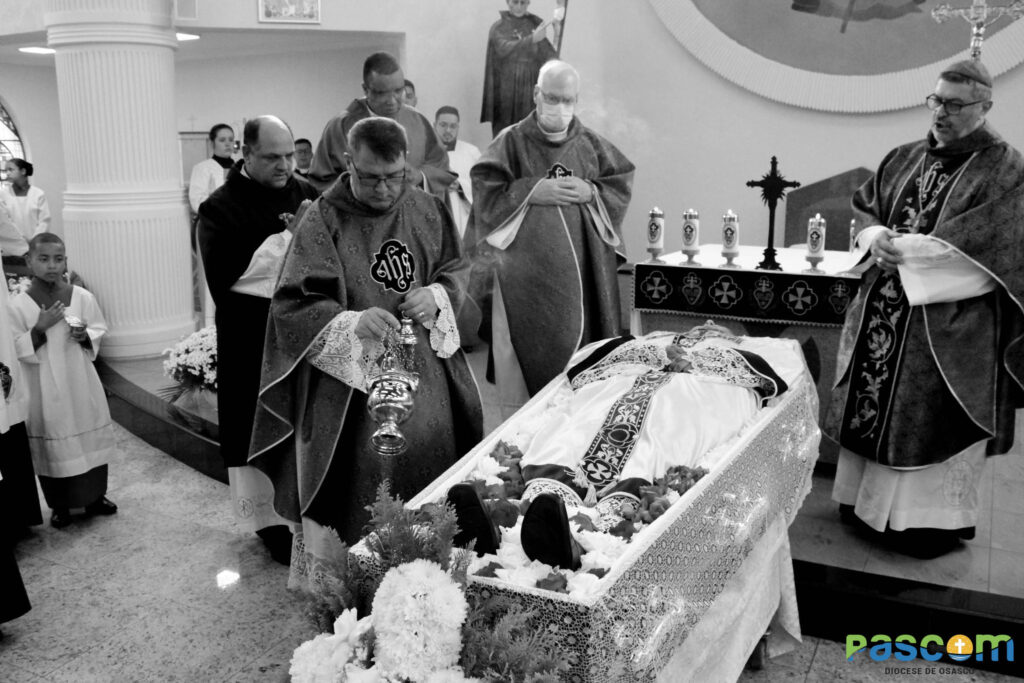 Ao final da missa, o Provincial da Congregação realizou o Rito das Exéquias. Logo após, os familiares, amigos e paroquianos prestaram as últimas homenagens na igreja. Em seguida, o cortejo seguiu para o Cemitério Municipal Bela Vista. Momento de despedida, emoção e gratidão a Deus pela sua entrega e sua dedicação à Igreja de Cristo.