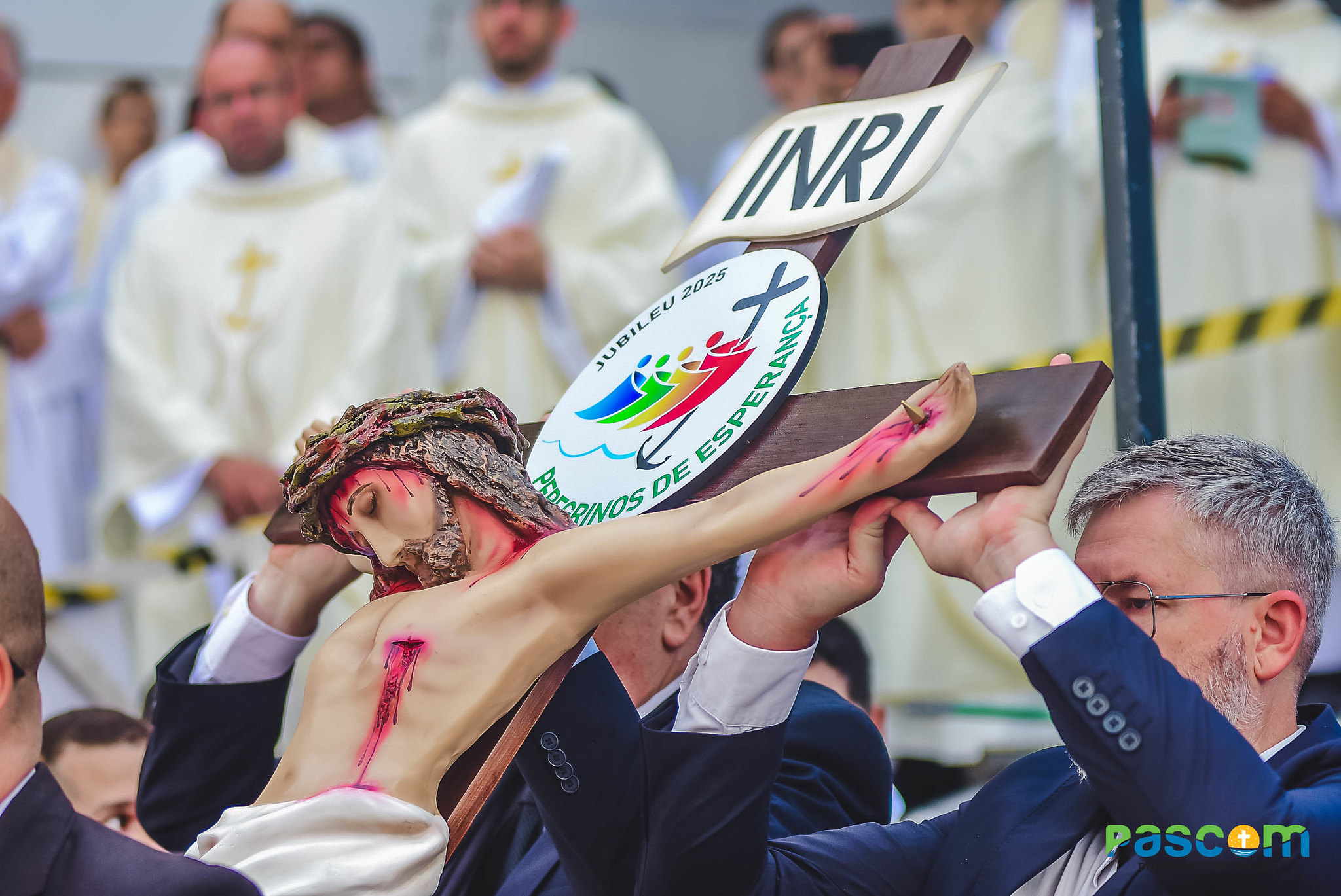 Na homilia, o bispo expressou a esperança de que “essa caminhada de hoje, tão bonita, tão serena, tão esperada, seja realmente um símbolo, um signo de uma caminhada conjunta que devemos fazer neste ano santo, onde o Senhor nos promete tantas, tantas pérolas preciosas, tantas pedras preciosas de esperança”.