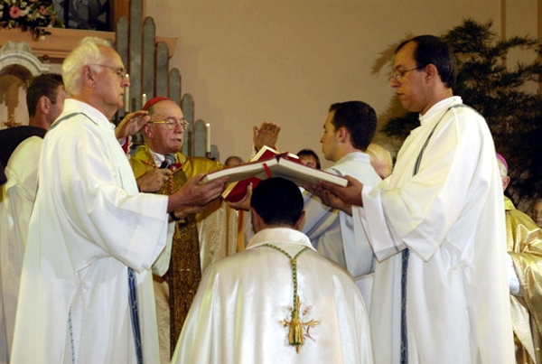 Passagem do báculo entre D. Ercilio e D. João.