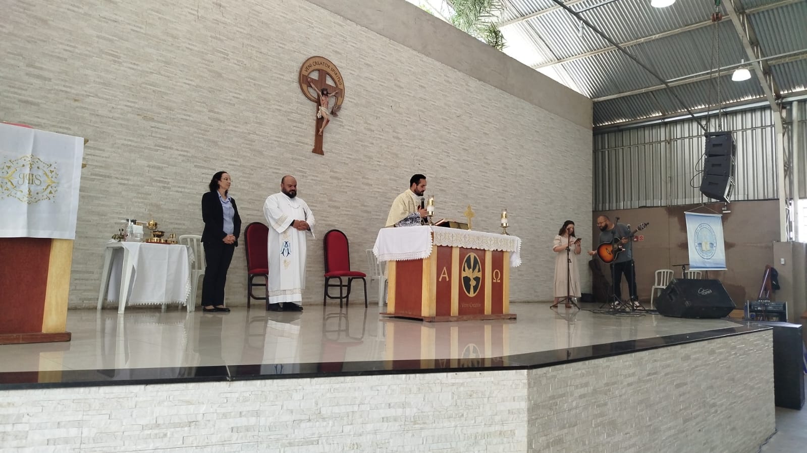 O encontro foi concluído com a celebração da Santa Missa, oportunidade em que os catequistas, responsáveis pela preparação das crianças para a Primeira Comunhão, puderam renovar sua experiência pessoal com Nosso Senhor, presente na Eucaristia. Presidiu o padre Cosme, com a concelebrada do padre Cleiton Silva.