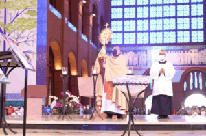 O encontro foi concluído com a celebração da Santa Missa, oportunidade em que os catequistas, responsáveis pela preparação das crianças para a Primeira Comunhão, puderam renovar sua experiência pessoal com Nosso Senhor, presente na Eucaristia. Presidiu o padre Cosme, com a concelebrada do padre Cleiton Silva.