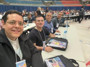Participam do encontro o Pe. Vagner Moraes, representante da OSIB Sul1 (Organização dos Seminários e Institutos do Brasil), Pe. Adilson Rampaso, Pe. Carlos Eduardo de Souza e Pe. Reginaldo Hilário, delegados da Diocese de Osasco.