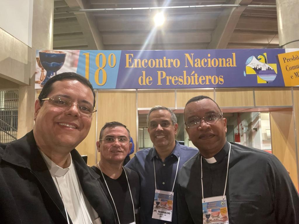 Participam do encontro o Pe. Vagner Moraes, representante da OSIB Sul1 (Organização dos Seminários e Institutos do Brasil), Pe. Adilson Rampaso, Pe. Carlos Eduardo de Souza e Pe. Reginaldo Hilário, delegados da Diocese de Osasco.