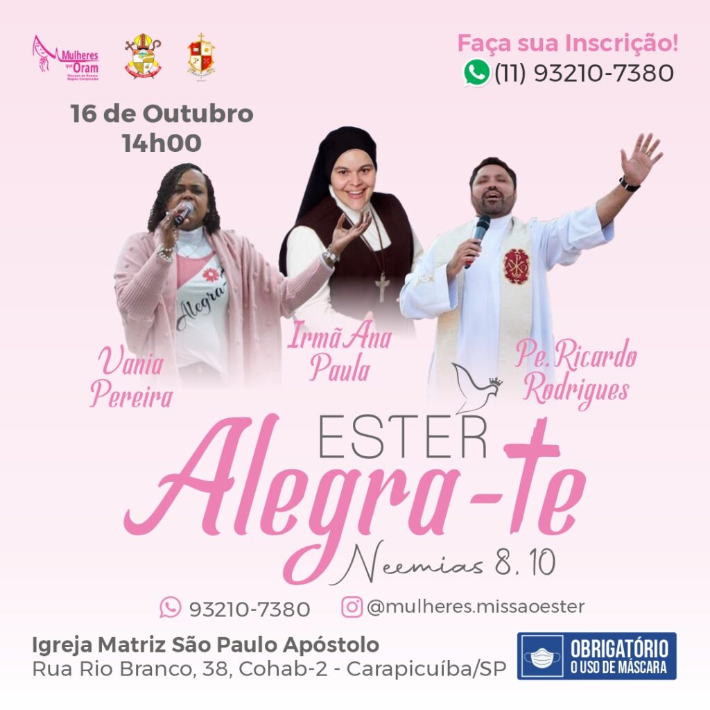 O Encontro Regional ESTER é promovido pelo Grupo Católico Mulheres que Oram de Carapicuíba, pertencente a Diocese de Osasco – SP.