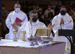 Já no início da Santa Missa, Dom João Bosco lembrou a jornada de oração convocada pelo Papa Francisco nos 30 principais santuários marianos do mundo, pelo fim da pandemia de Covid-19 (saiba mais clicando aqui).