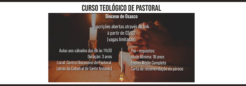 Inscrições para a nova turma do Curso Teológico Pastoral se encerram no dia 29 de fevereiro.