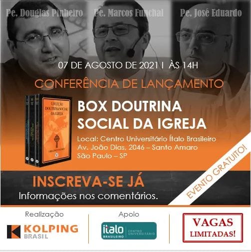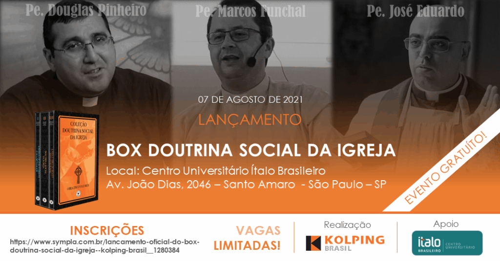 O Box Coleção Doutrina Social da Igreja, editado com o selo Edições Kolping, será lançado oficialmente no dia 7 de agosto próximo, das 14h às 17h no Centro Universitário Ítalo Brasileiro (São Paulo/SP), de forma semipresencial, (público local e online).