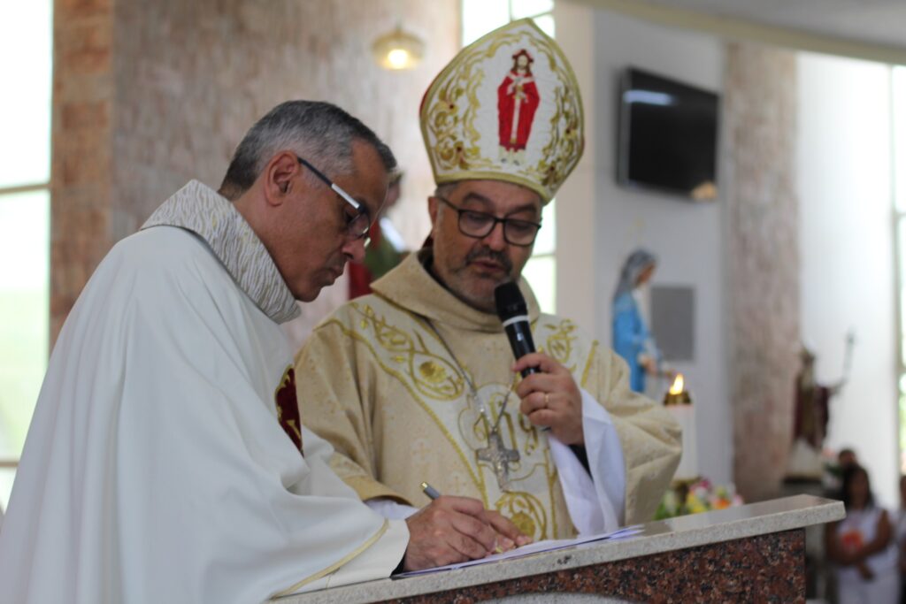 A Solene Eucaristia de tomada de posse aconteceu, às 9h, na igreja matriz, presidida por Dom João Bosco. Concelebraram os padres Antônio Carlos de Souza, Rogério Lemos, Ubirajara Vieira, Pedro Vicente, OCS; e o Frei Carmelita Rafael. Assistiu a celebração o diácono Augusto Barbosa.