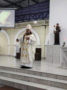 A Santa Missa foi presidida por Dom João Bosco Barbosa de Sousa, bispo diocesano, que descreveu a vivência do matrimônio como vocação e missão. Concelebraram a Eucaristia o Pe. Fábio Rosário, Pe. Vitor Kano – diretor espiritual do Setor Itapevi, Pe. Alexandre – diretor espiritual do Setor Santo Antônio, e sacerdotes que acompanham o serviço nas paróquias.
