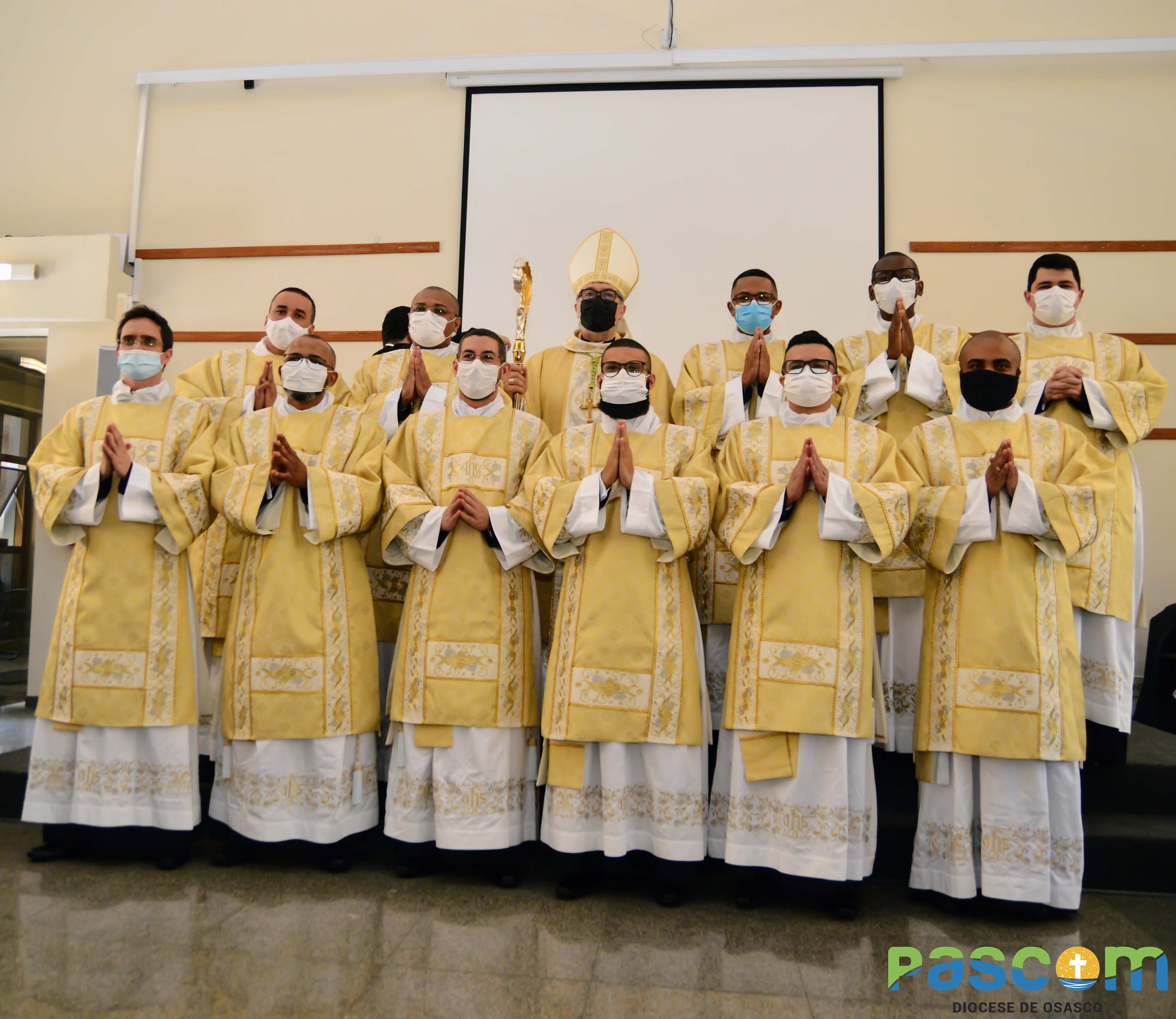 Neste sábado, 23 de outubro, pelas mãos de Dom Frei João Bosco Barbosa de Sousa, ofm, foram ordenados 11 novos diáconos: Douglas Henrique, Francisco das Chagas, Jefferson Bezerra, Jonathan Paes, Juliano Pires, Kennedy Robert, Marco Aurélio, Robison José, Rogério Batista, Samuel Elias e Tiago dos Santos. Por conta desse grande número de candidatos, a missa que aconteceu na Catedral de Santo Antônio, em Osasco, foi restrita ao clero, seminaristas, familiares e amigos dos ordenandos.
