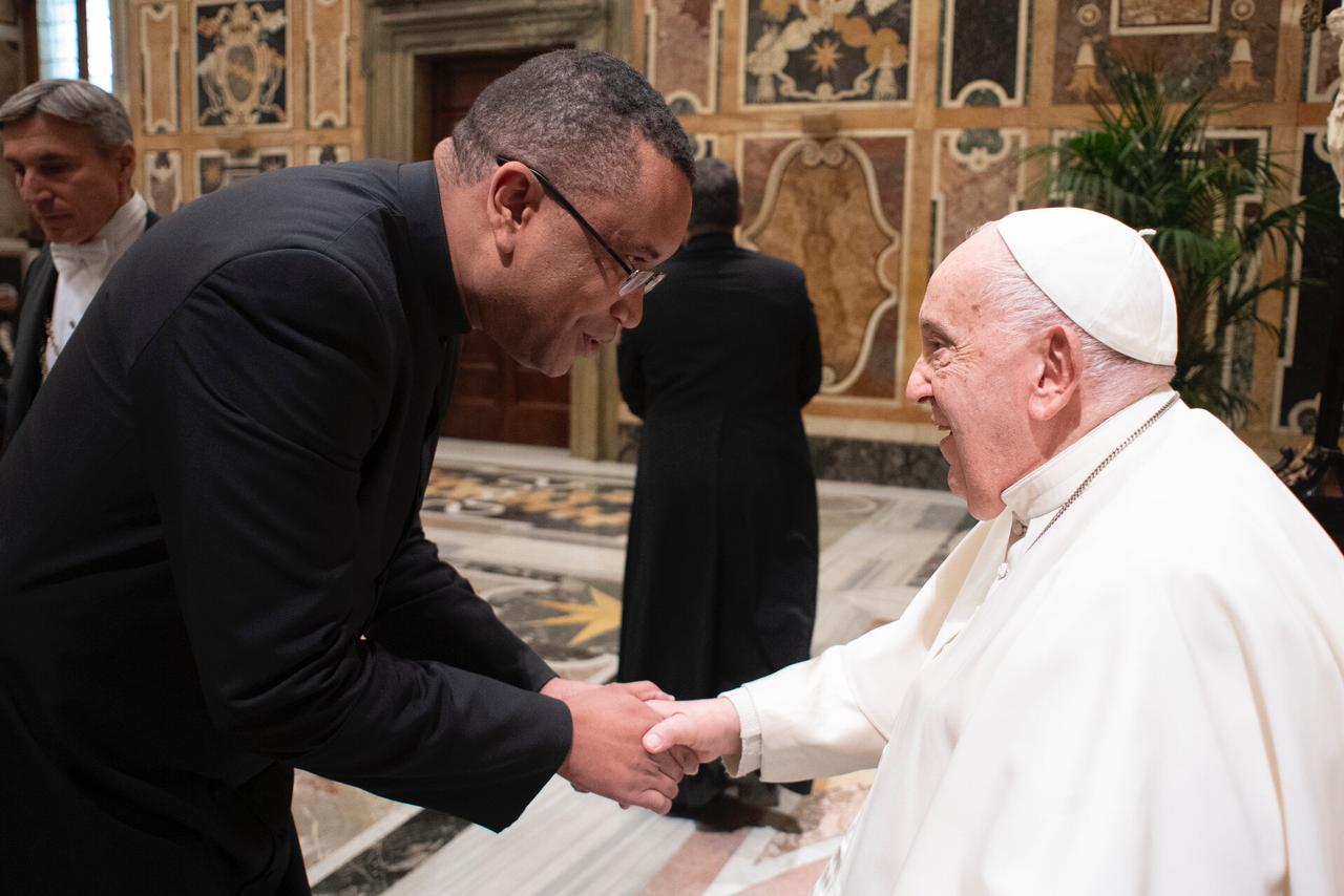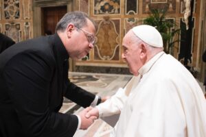 No sábado, 23 de novembro, o Papa Francisco recebeu os participantes em audiência no Vaticano. Na ocasião, o padre Marcos Funchal apresentou ao Pontífice algumas fotos dos alunos do colégio católico São José, que foram abençoadas pelo Santo Padre.