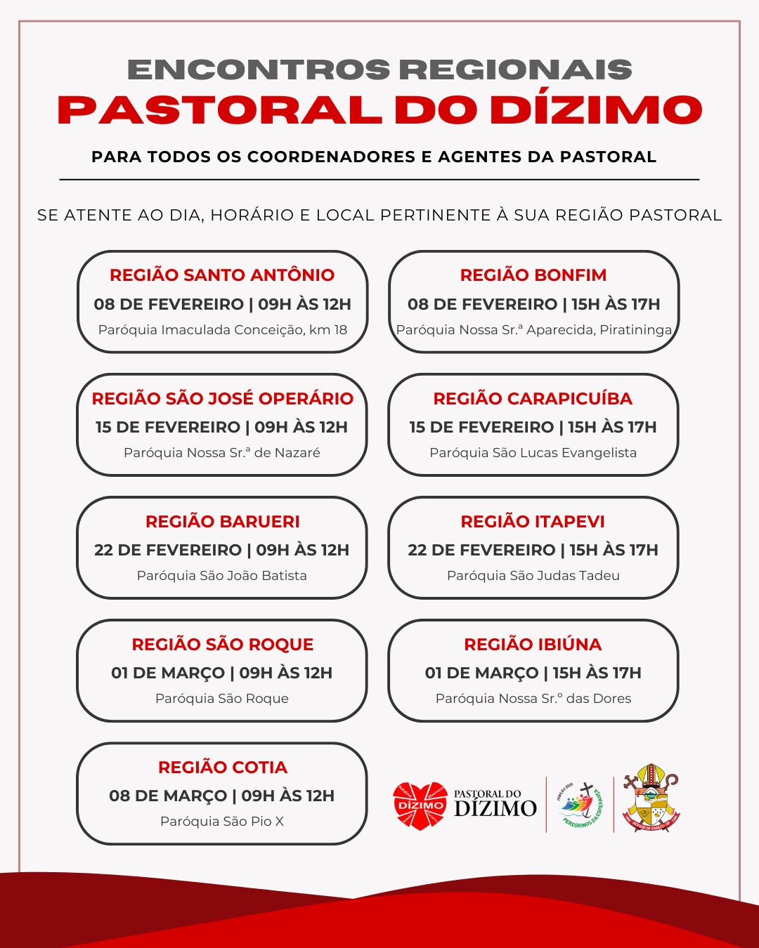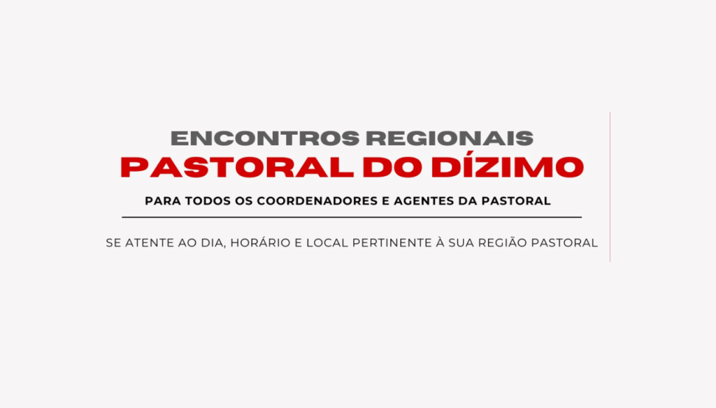 O encontro é destinado a todos os coordenadores e agentes da pastoral. Se atente ao dia, horário e local pertinente à sua região: