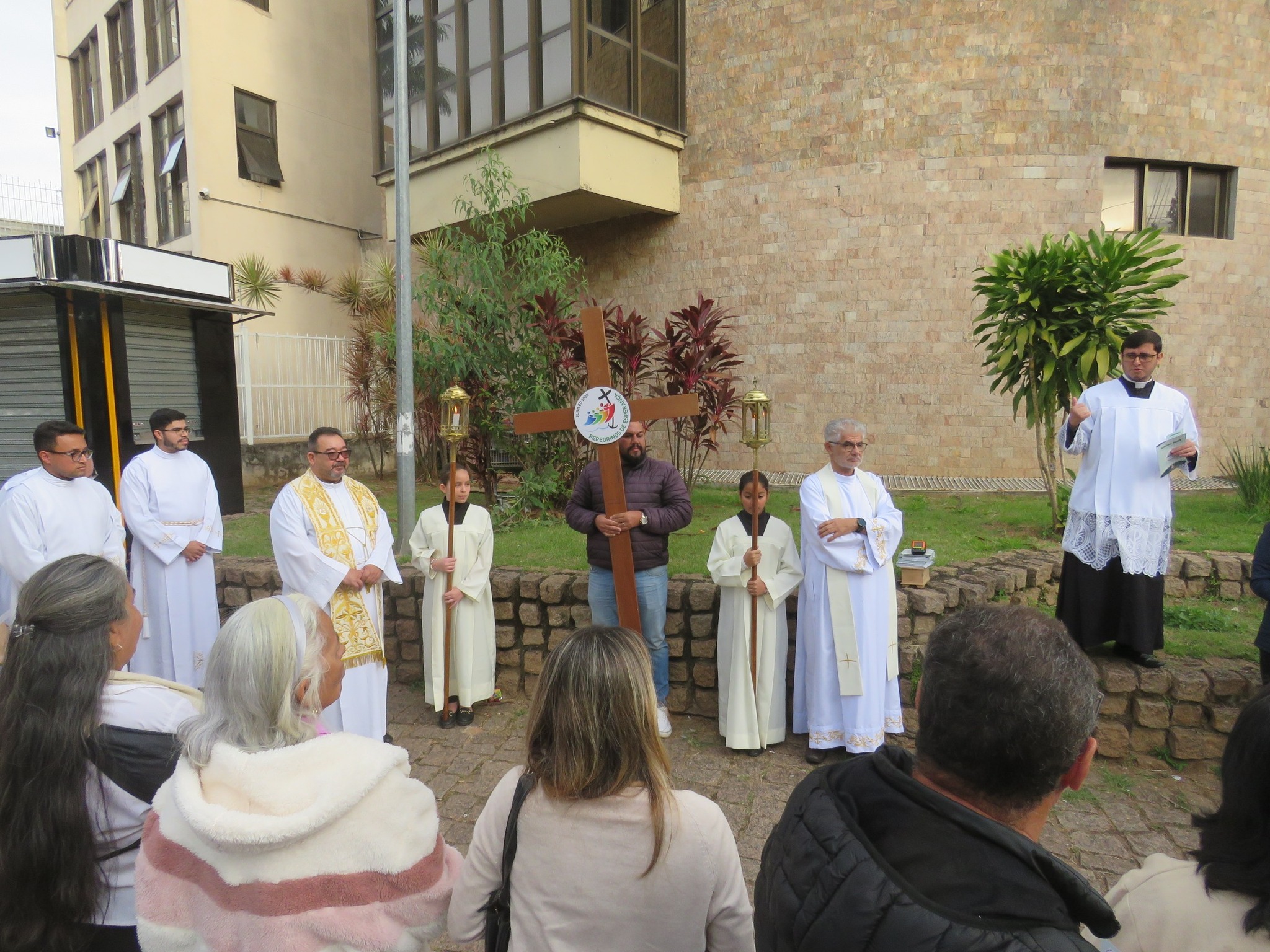 Sacerdotes, seminaristas e fiéis se reuniram às 17h, em frente a Torre da Catedral, para meditarem a partir da proposta para o Jubileu 2025 – Peregrinos de Esperança.