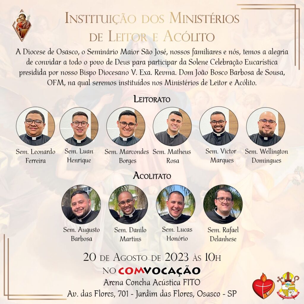 É com grande alegria que o Seminário São José da Diocese de Osasco convida a todos para a Solene Celebração Eucarística da Instituição dos Ministérios de Leitor e Acólito dos seminaristas: