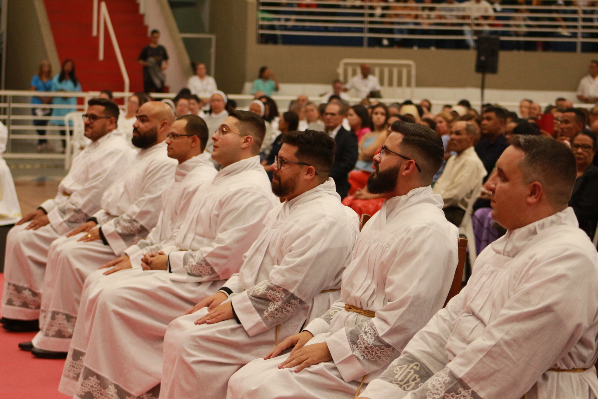 “Coloco esse cenário pra vocês que estão começando, porque aqui estão os primeiros passos de vocês. Aqui estão as primeiras urgências e necessidades de vocês como diáconos, de dar a vida, de colocar toda a capacidade de vocês a serviço do reino, a serviço da esperança, a serviço desta história gloriosa de Jesus Cristo Rei do Universo. Que vai acontecer lá na frente, mas que nesse tempo que estamos vivendo exige serviço, luta, constância, perseverança. Vencer cada dia, de novo, as nossas próprias deficiências para ser aquilo que o Senhor espera de nós.”, concluiu Dom João Bosco, após fazer menção ao Jubileu 2025 – ‘Peregrinos da Esperança’, tema proposto pelo Papa Francisco.