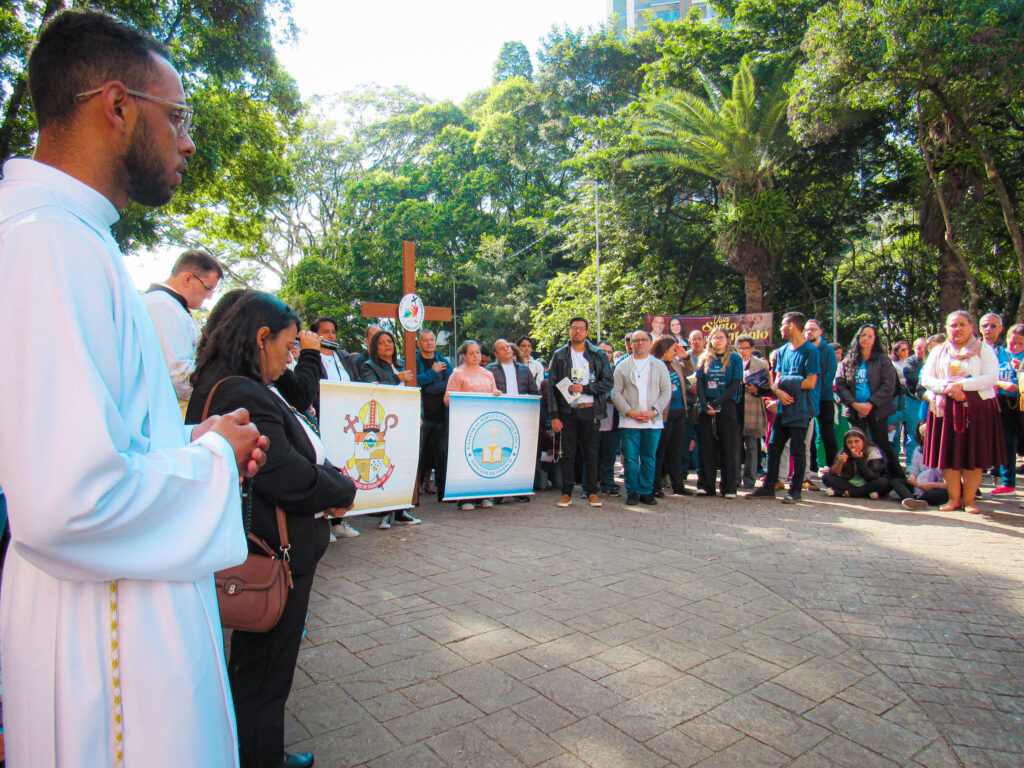 A programação teve início com concentração e oração na Praça Duque de Caxias, conduzida pelo assessor eclesiástico da Pastoral Catequética, padre Cosme de Lima, junto à comissão diocesana da Catequese. Em seguida, os fiéis seguiram em procissão para a Catedral Santo Antônio, onde foi celebrada a Santa Missa de abertura da semana de formação.