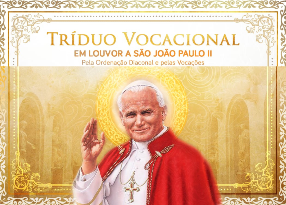 Dos dias 18 a 20 de outubro acontece o Tríduo Vocacional em louvor a São João Paulo II pela Ordenação Diaconal dos seminaristas Hiago Willian, Vinícius Rocha e Vitor Kano. O tríduo também tem como intenção a oração pelas vocações.